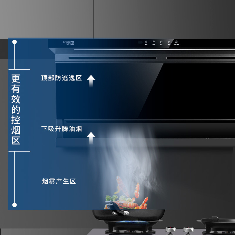 超人chaoren CXW-300-C206頂側(cè)雙吸油煙機(jī)497PA大靜壓22立方大吸力自清洗揮手感應(yīng)全封閉銅線電機(jī)